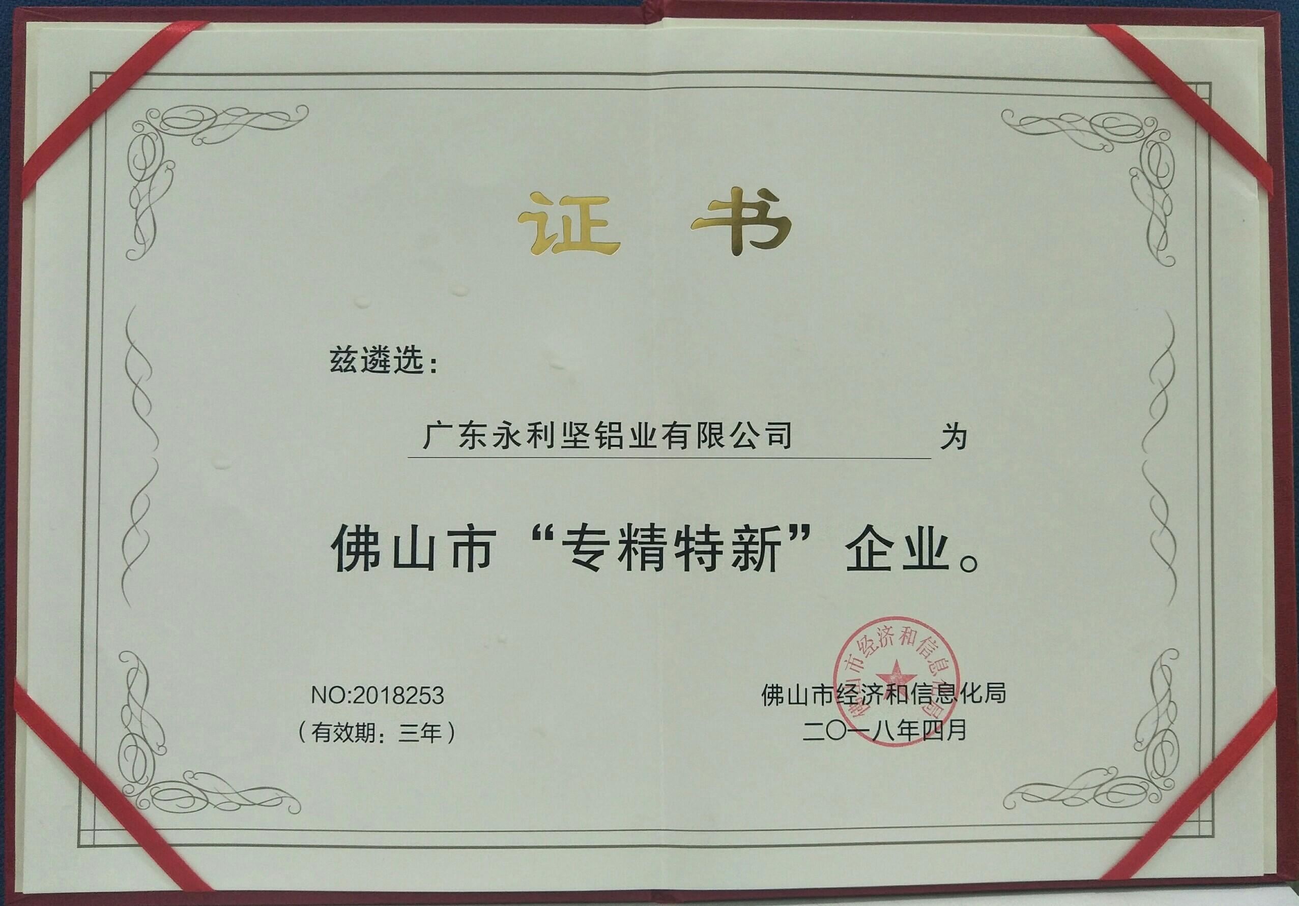 佛山专精特新企业证书