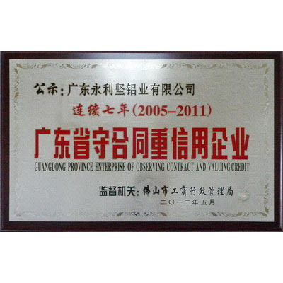 连续七年广东省守合同重点企业