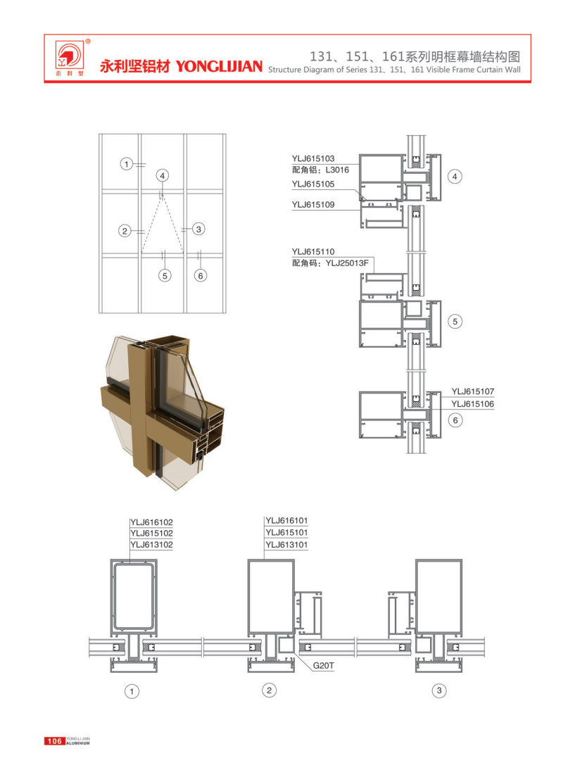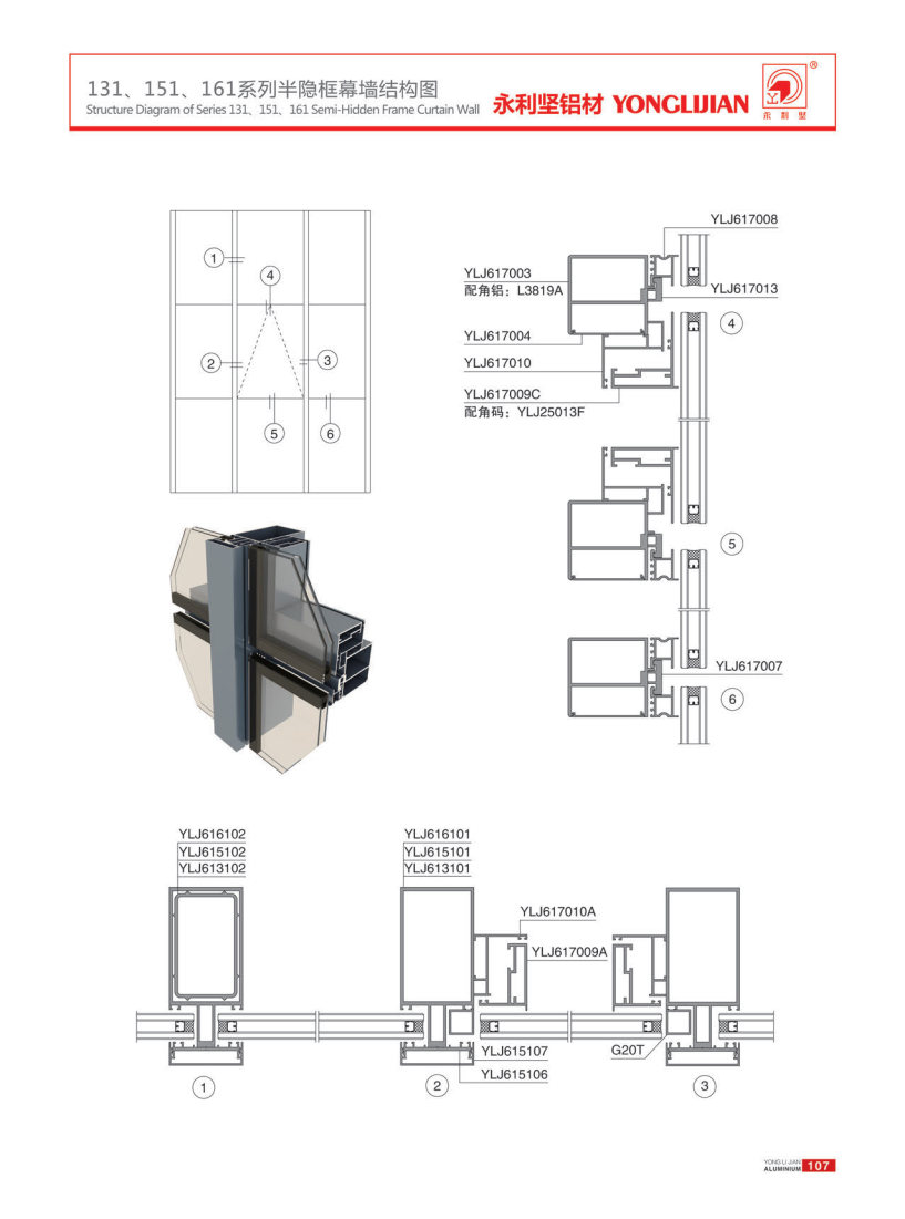 131, 151, 161 series semi concealed and exposed frame curtain walls