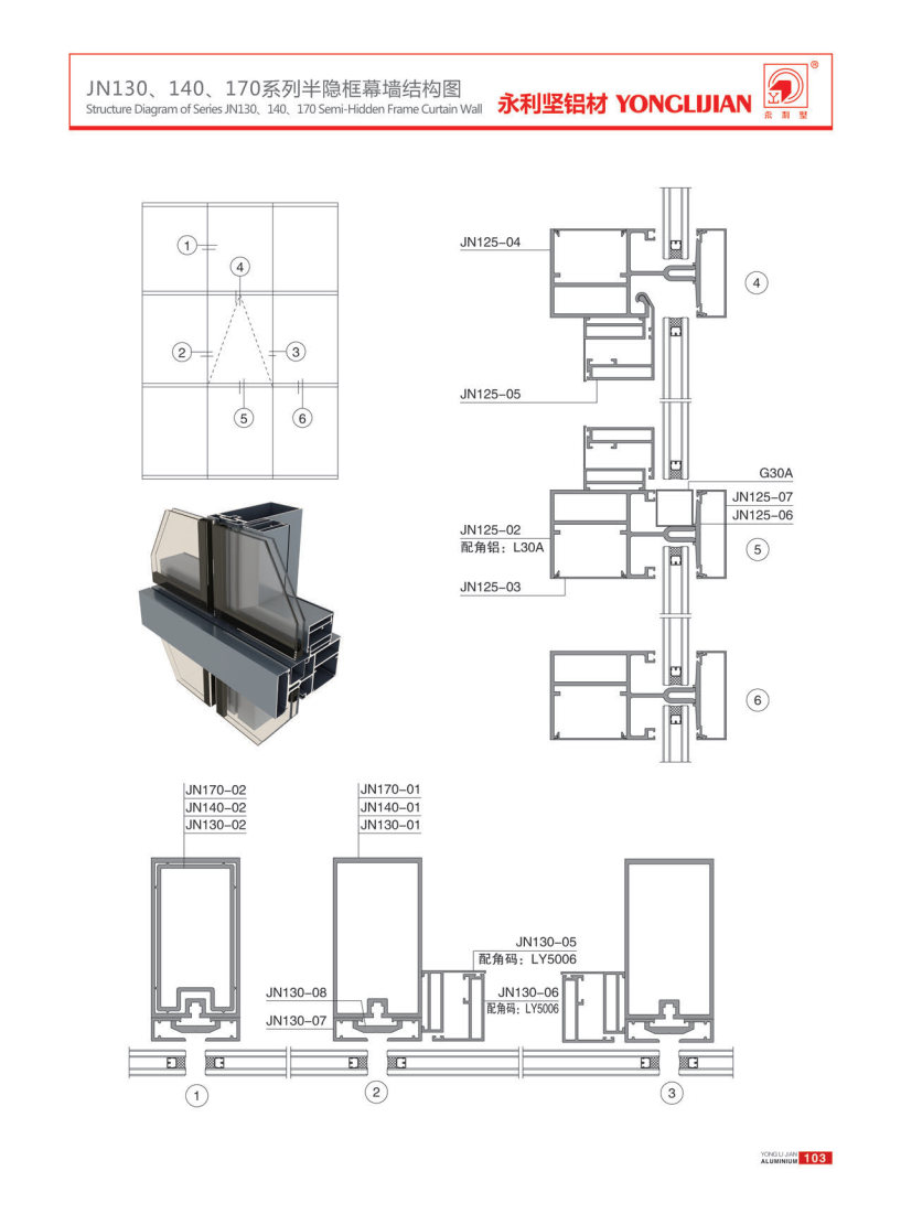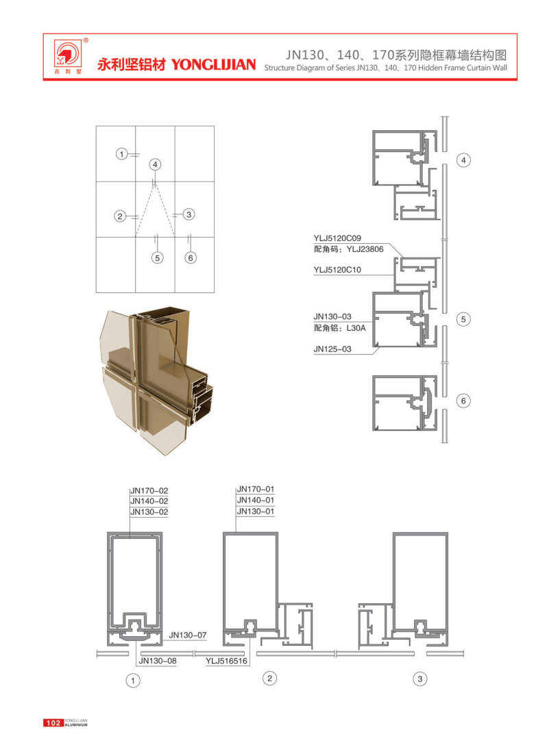 JN130、 140 and 170 series hidden frame and semi hidden frame curtain walls