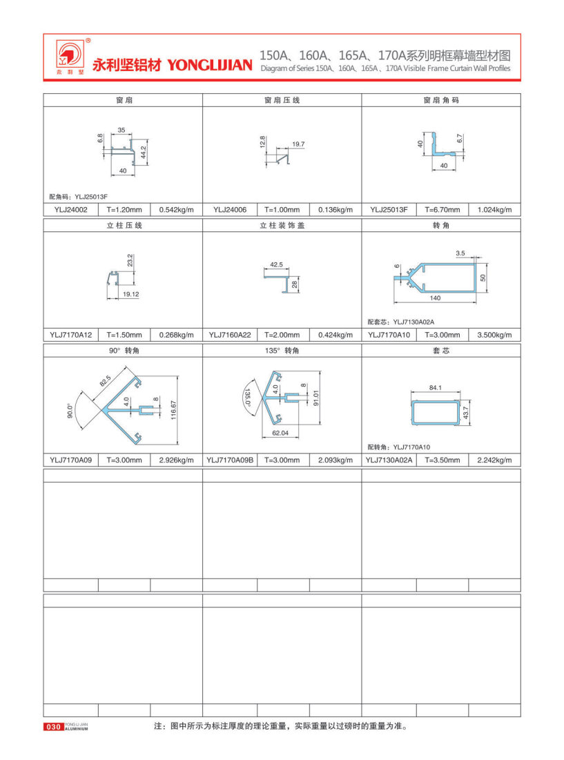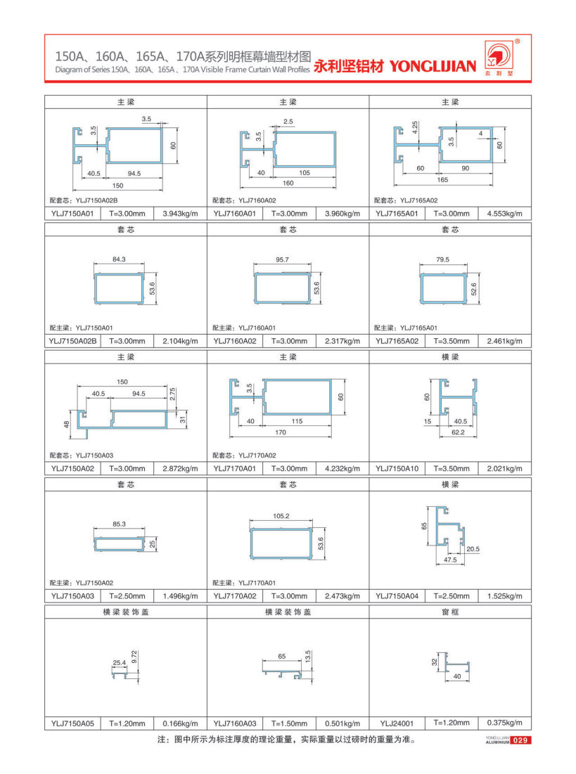 150A、160A、165A、170A系列明框幕墙