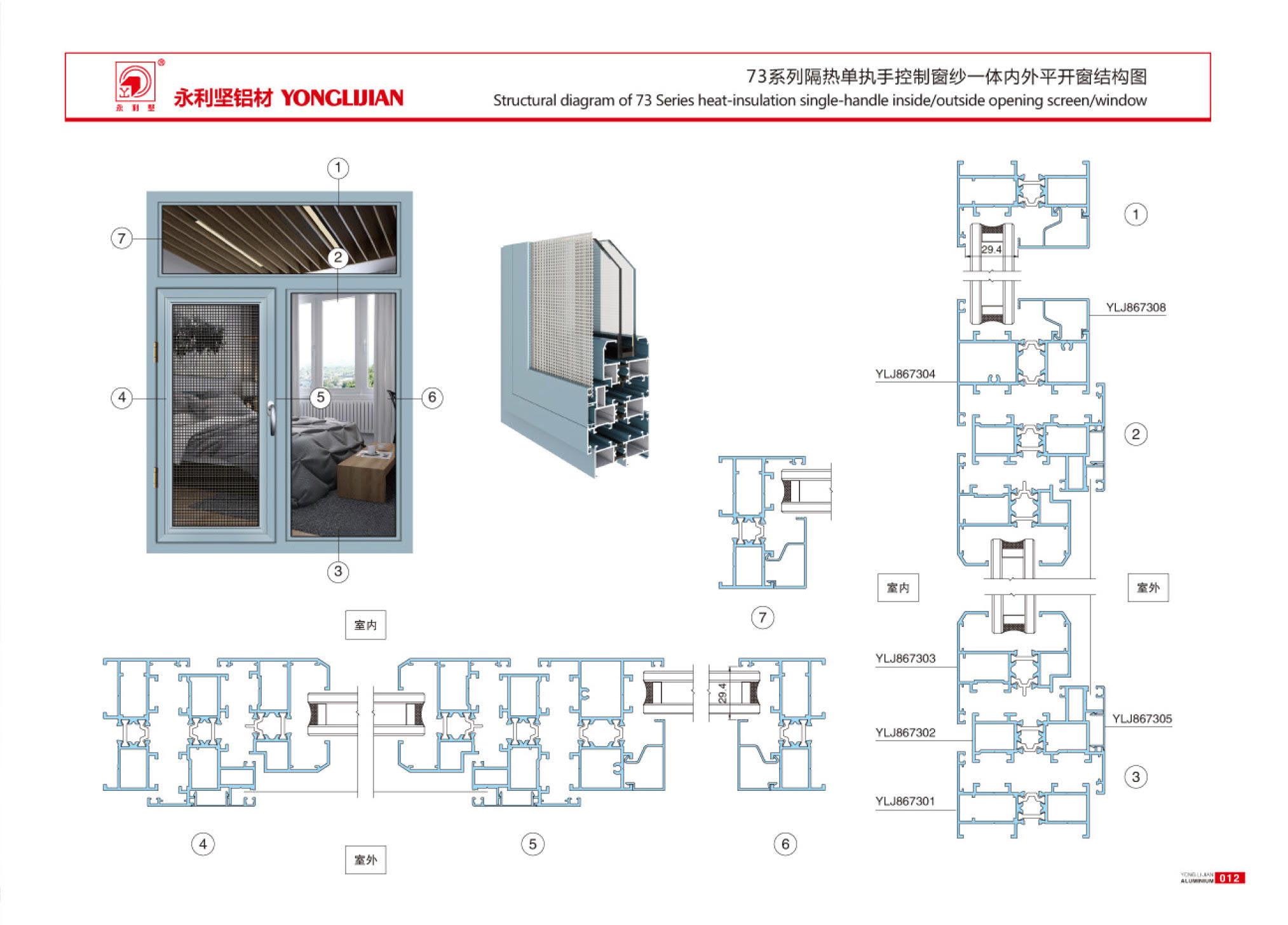 73-73A系列隔热单执手控制窗纱一体内外平开窗系列