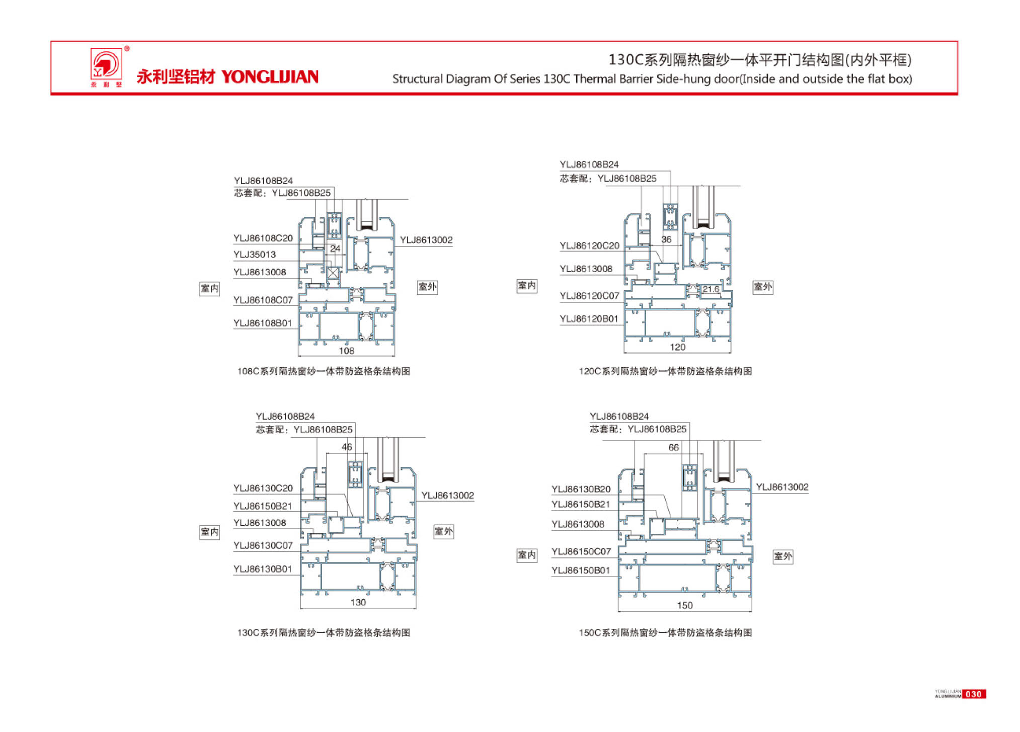 108C、120C、130C、150C系列隔热窗纱一体平开窗系列