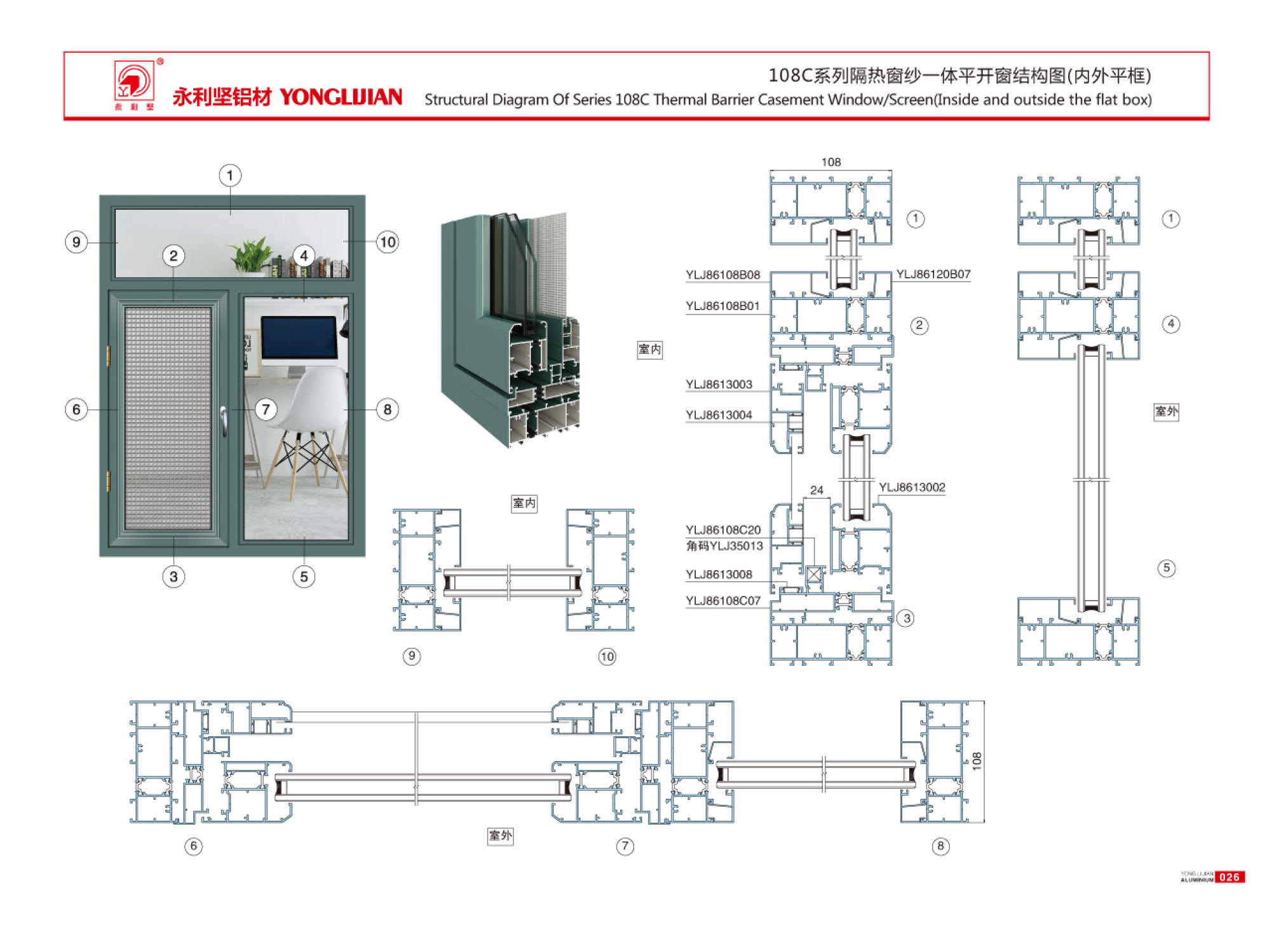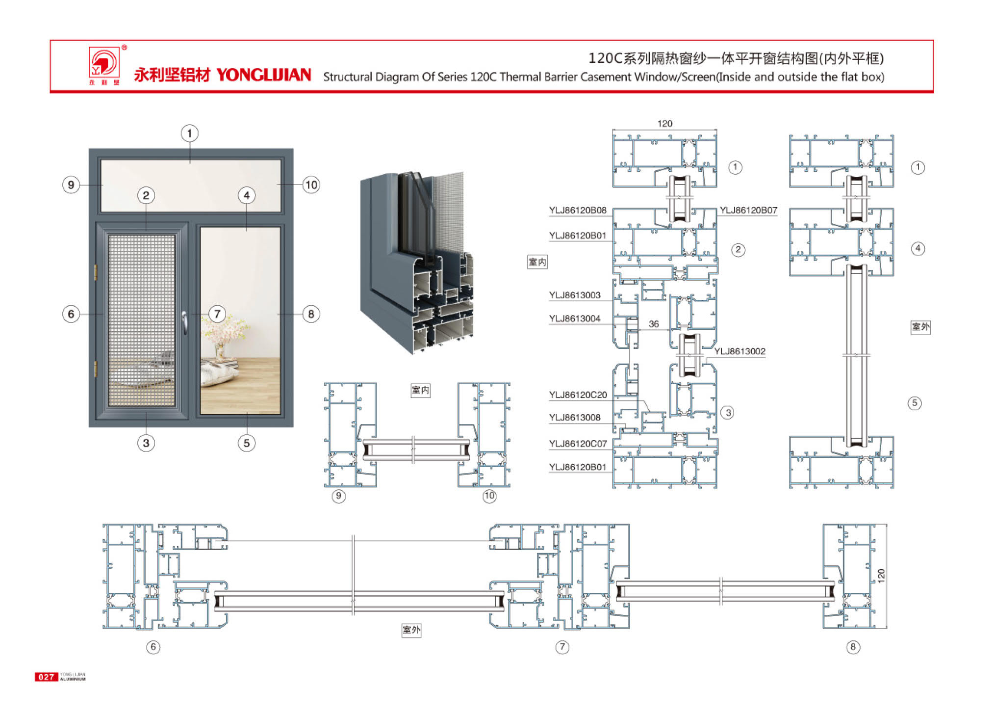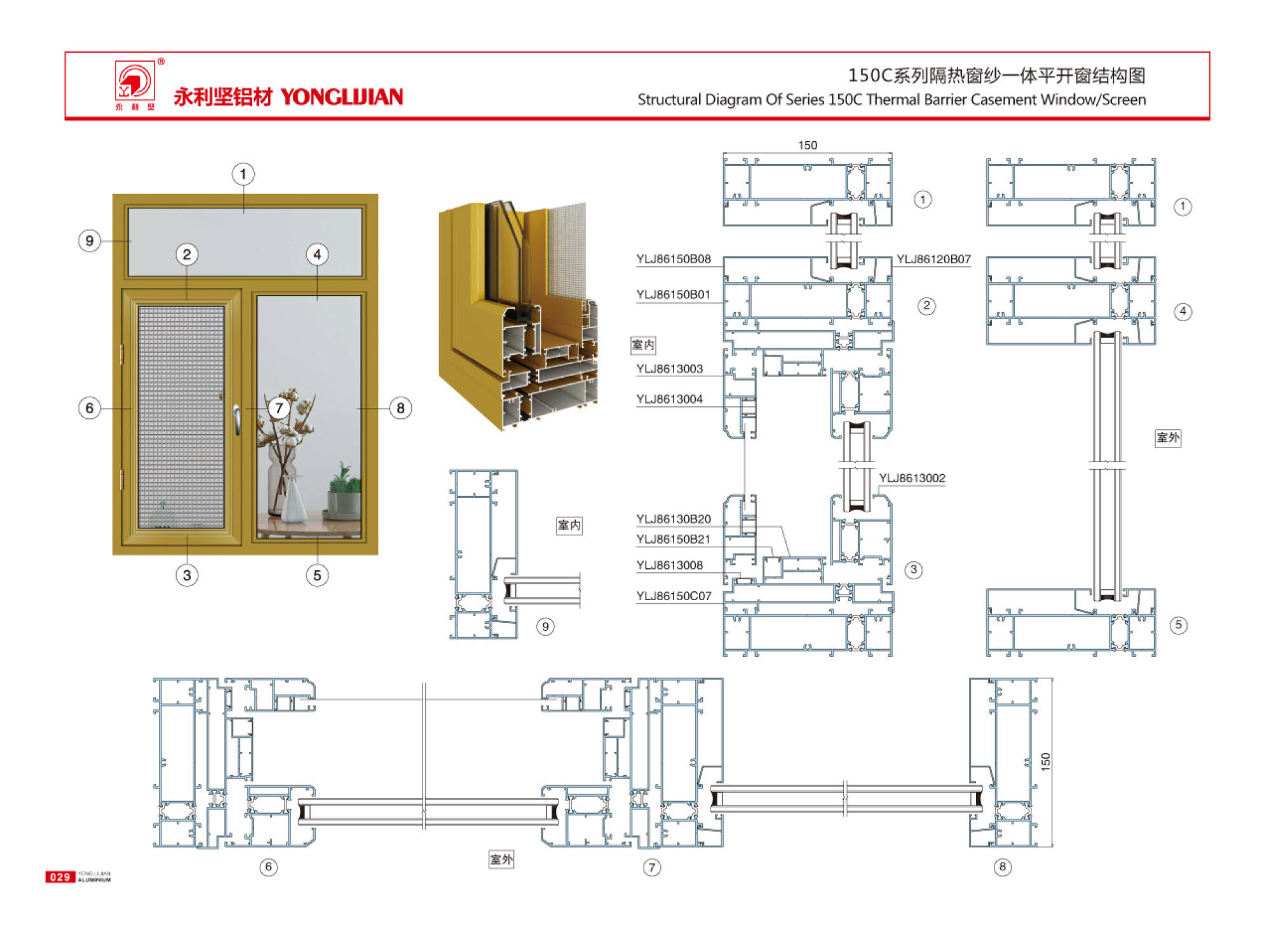 108C, 120C, 130C, 150C series insulated window screen integrated casement window series