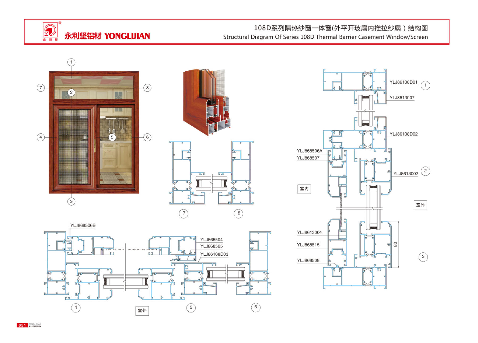 108D series insulated screen window integrated window (external flat opening glass fan and internal sliding screen fan) series