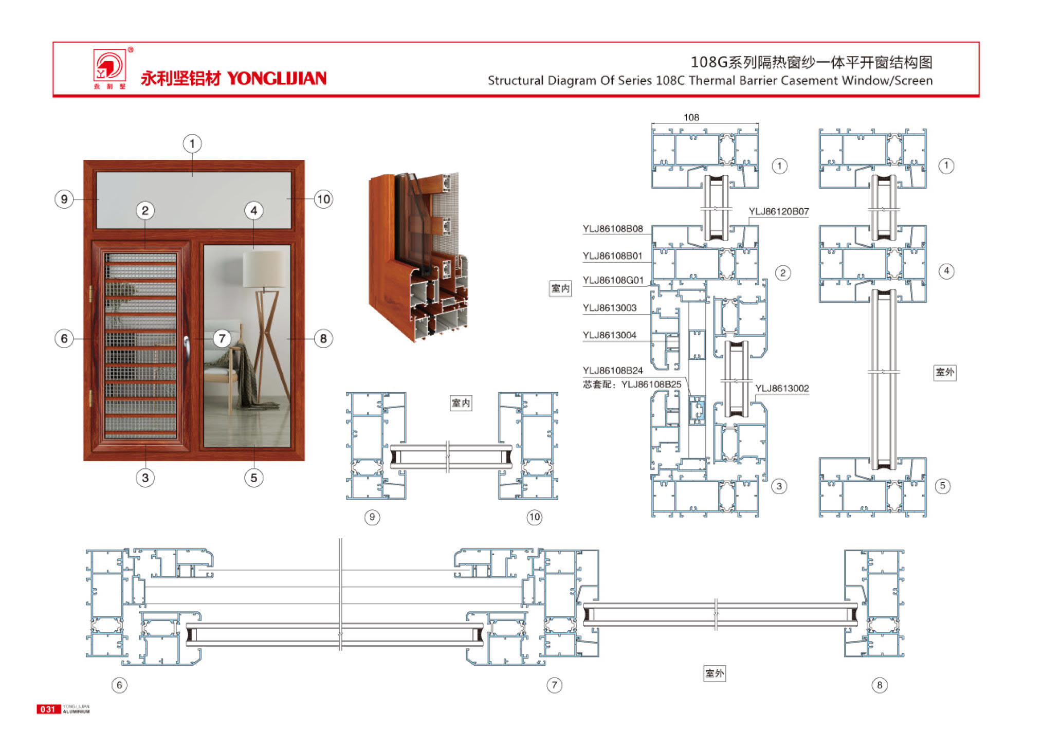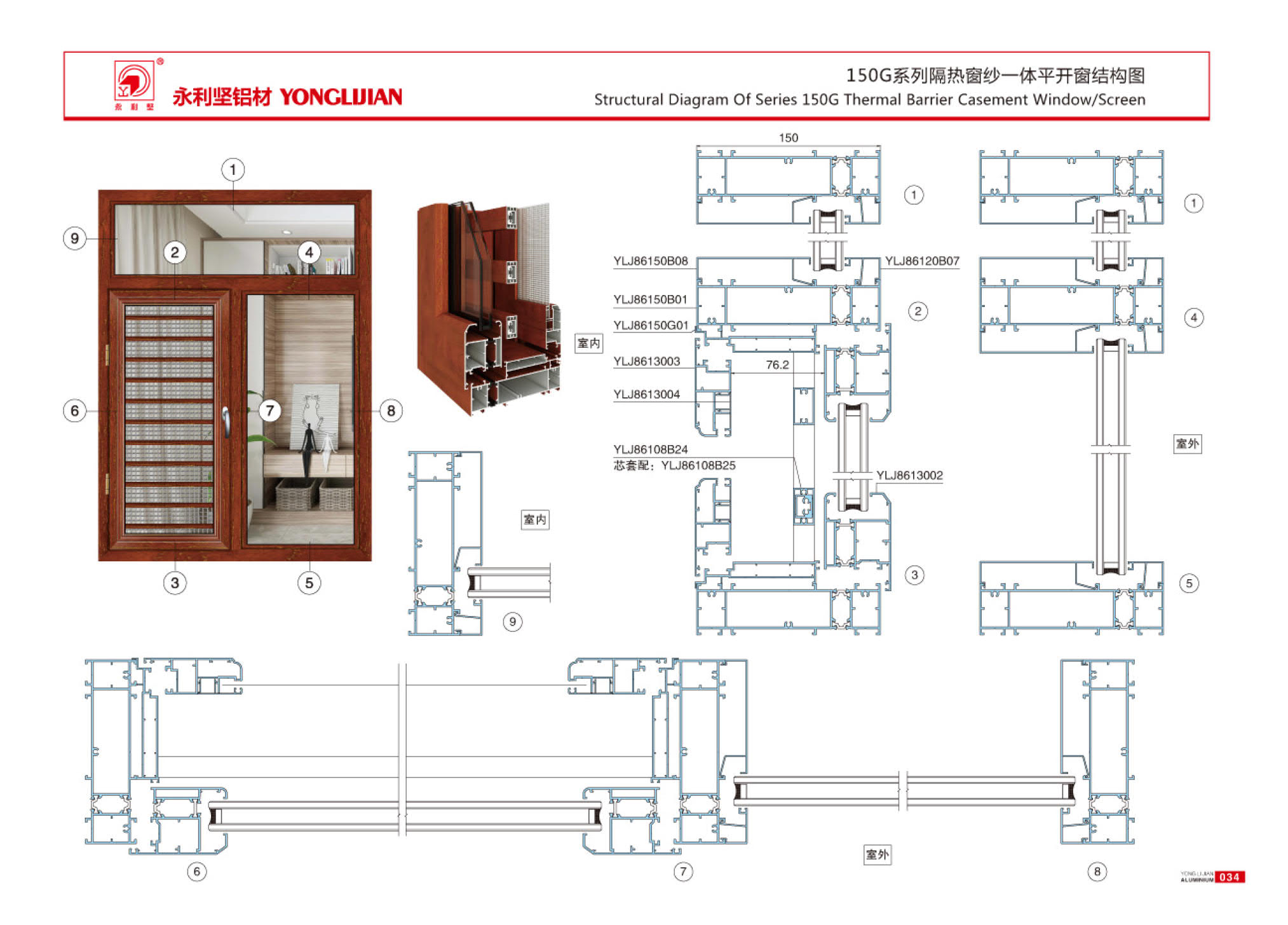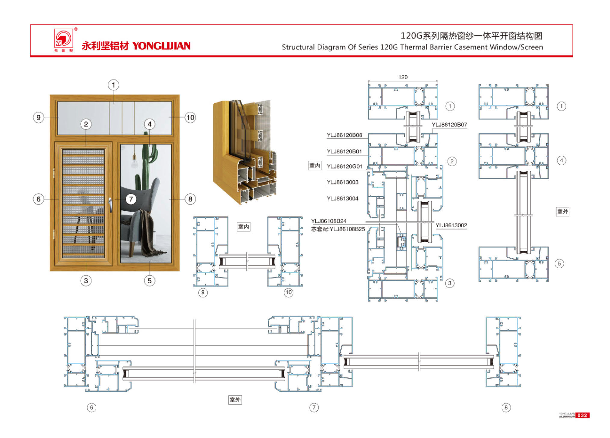 108G, 120G, 130G, 150G series insulated window screen integrated casement window series