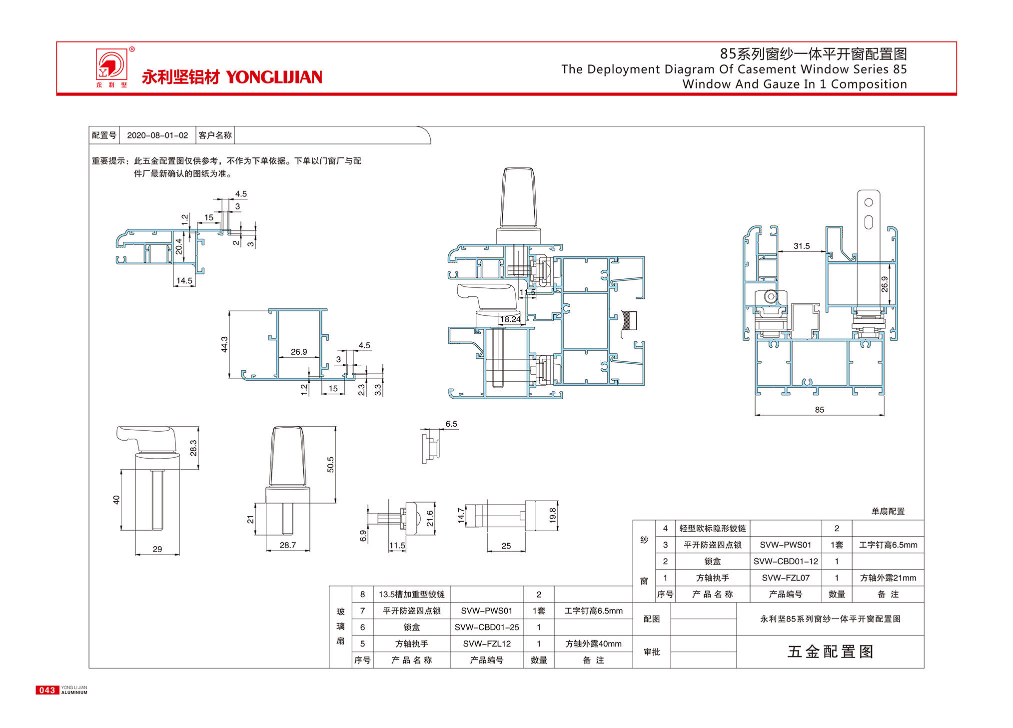 85Y系列窗纱一体平开窗(非隔热经济型)