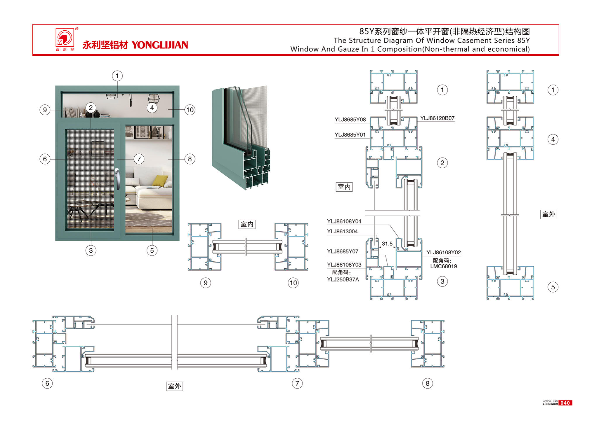 85Y series window screen integrated casement window (non insulated economy type)