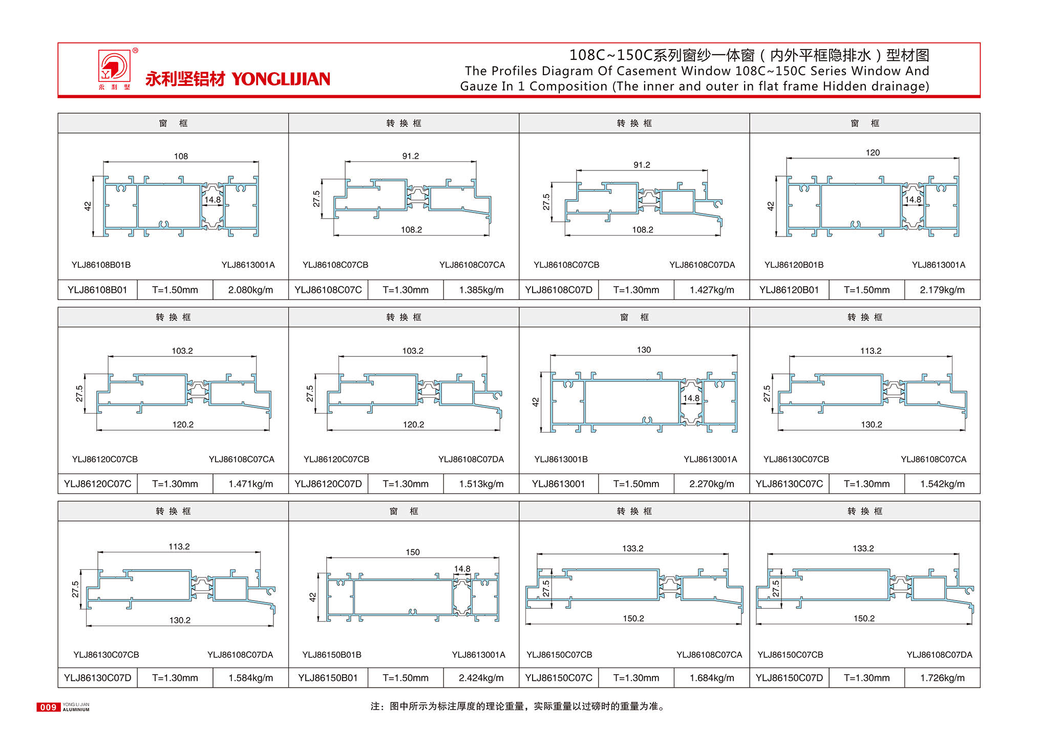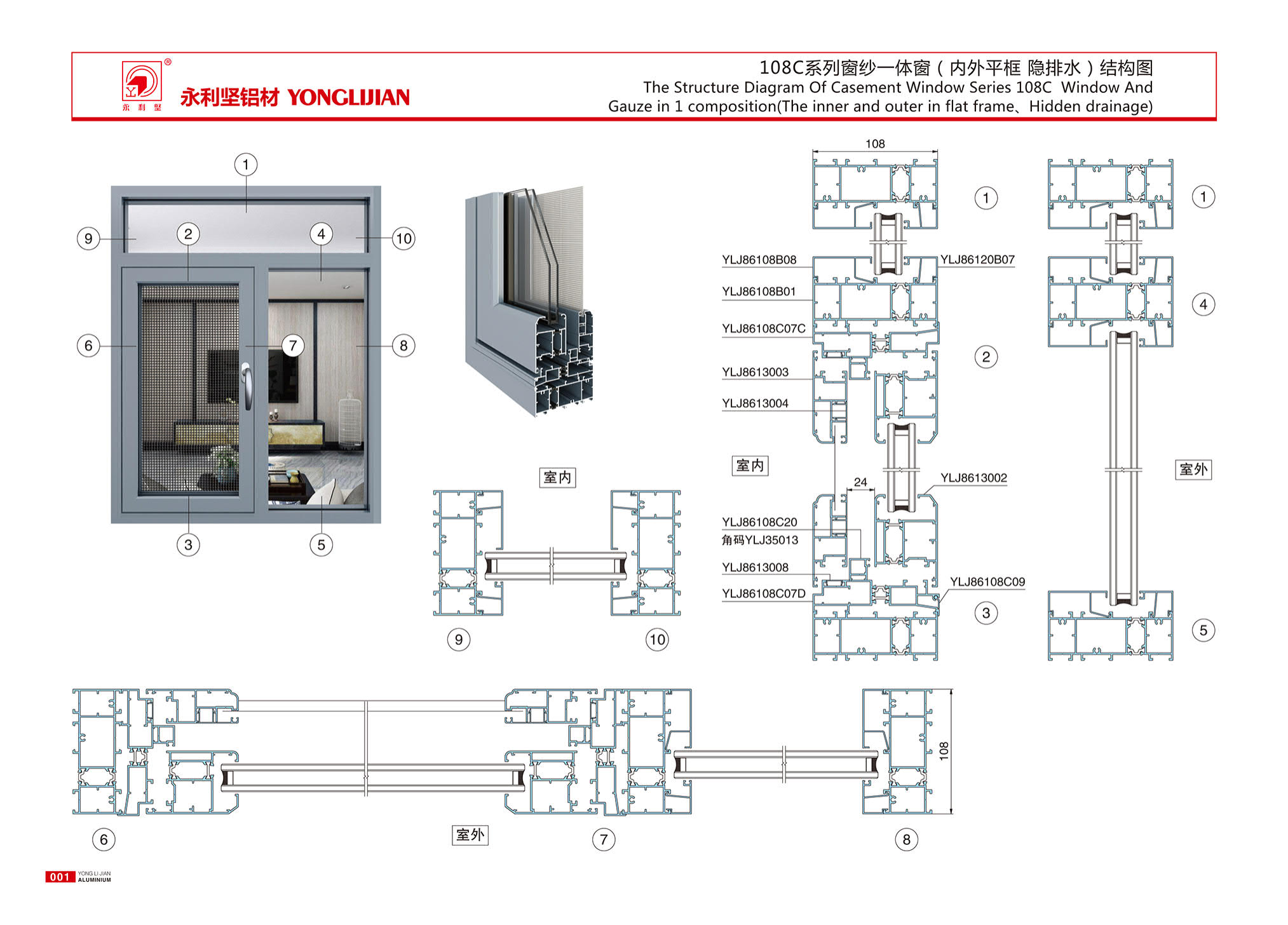 108C series insulated window screen integrated window (inner and outer flat frame, concealed drainage)