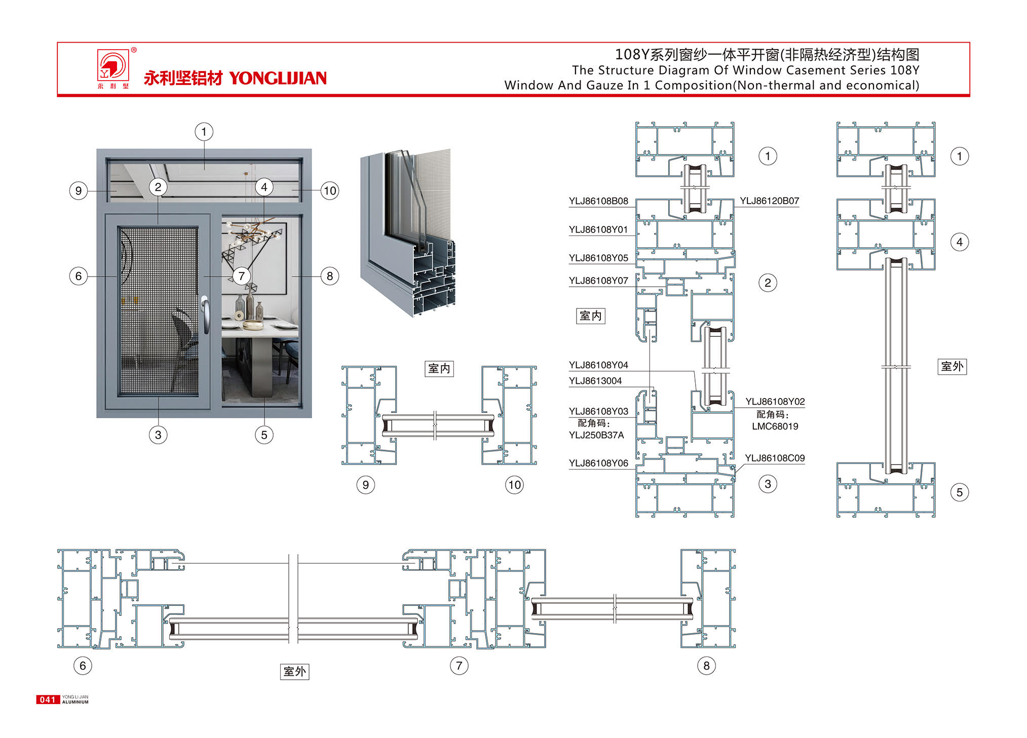 108Y series window screen integrated casement window (non insulated economy type)