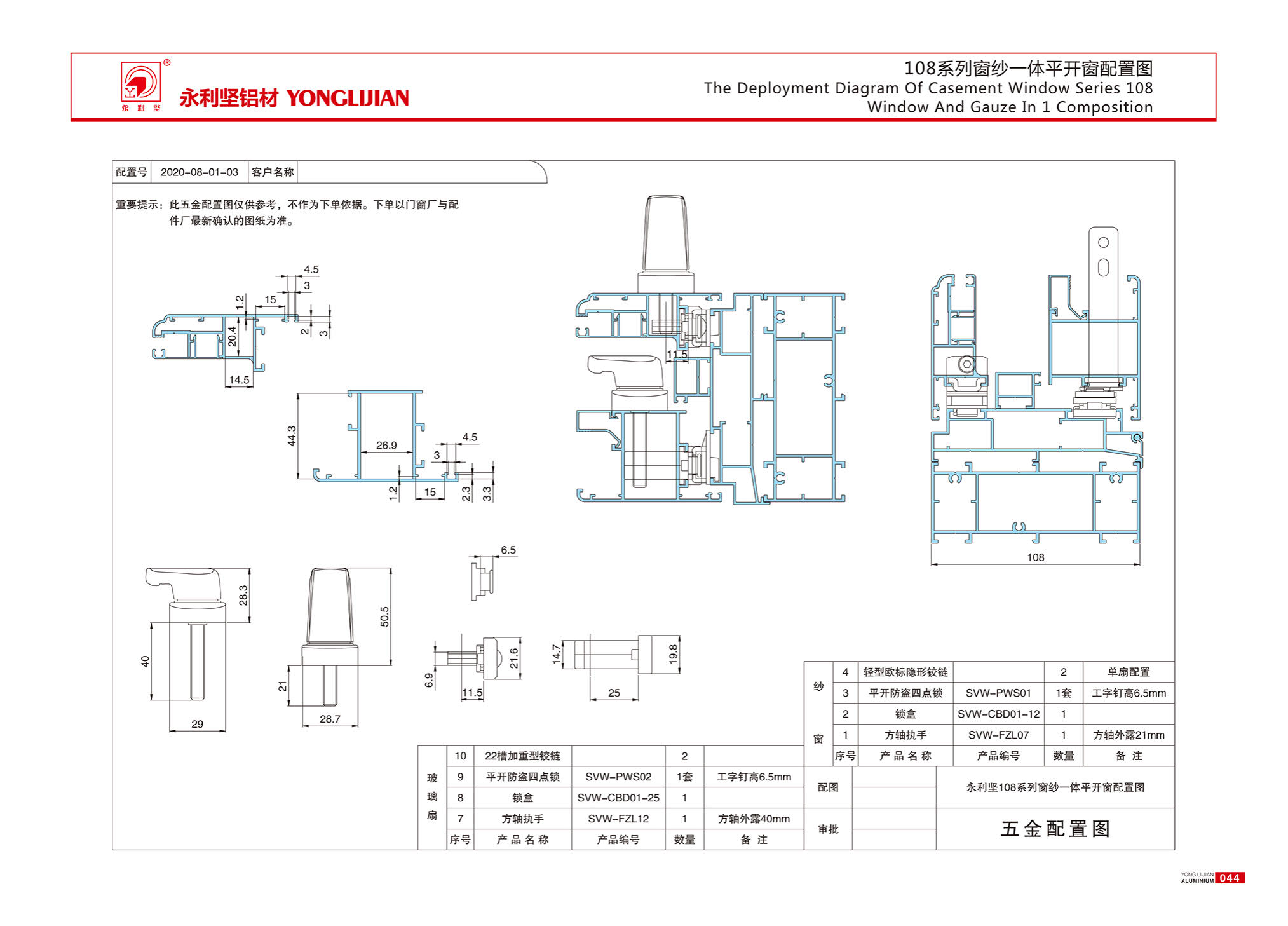 108Y系列窗纱一体平开窗(非隔热经济型)