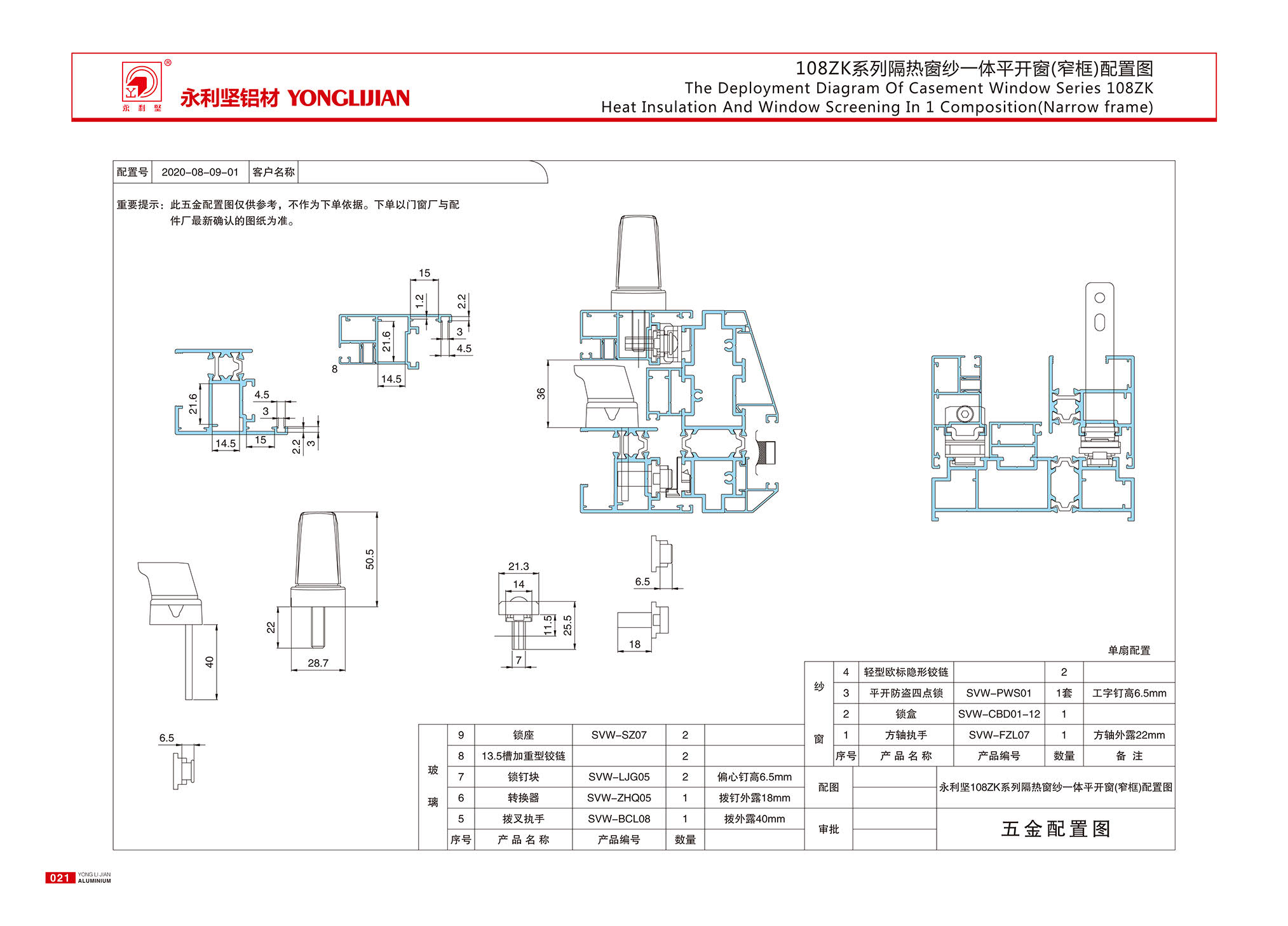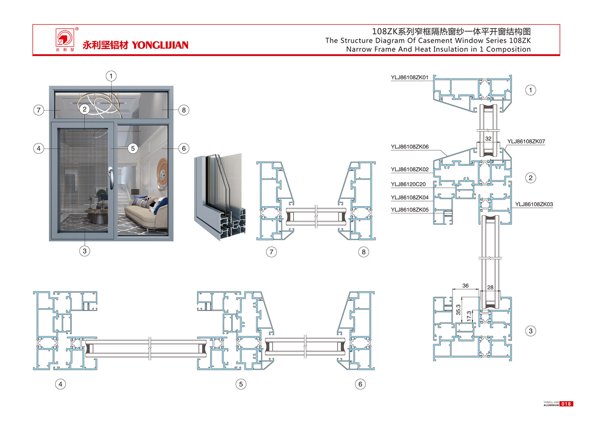 108ZK系列窄框隔热窗纱一体平开窗