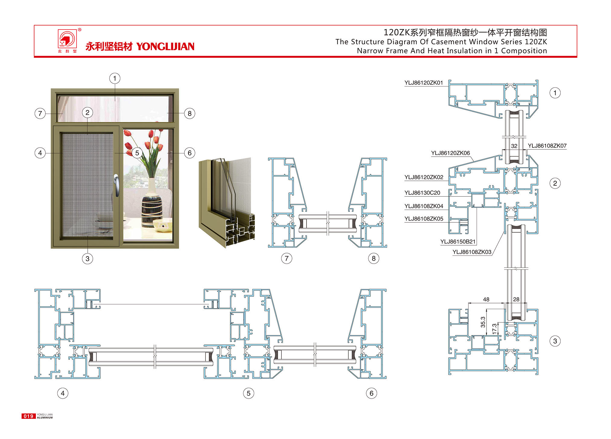 120ZK系列窄框隔热窗纱一体平开窗