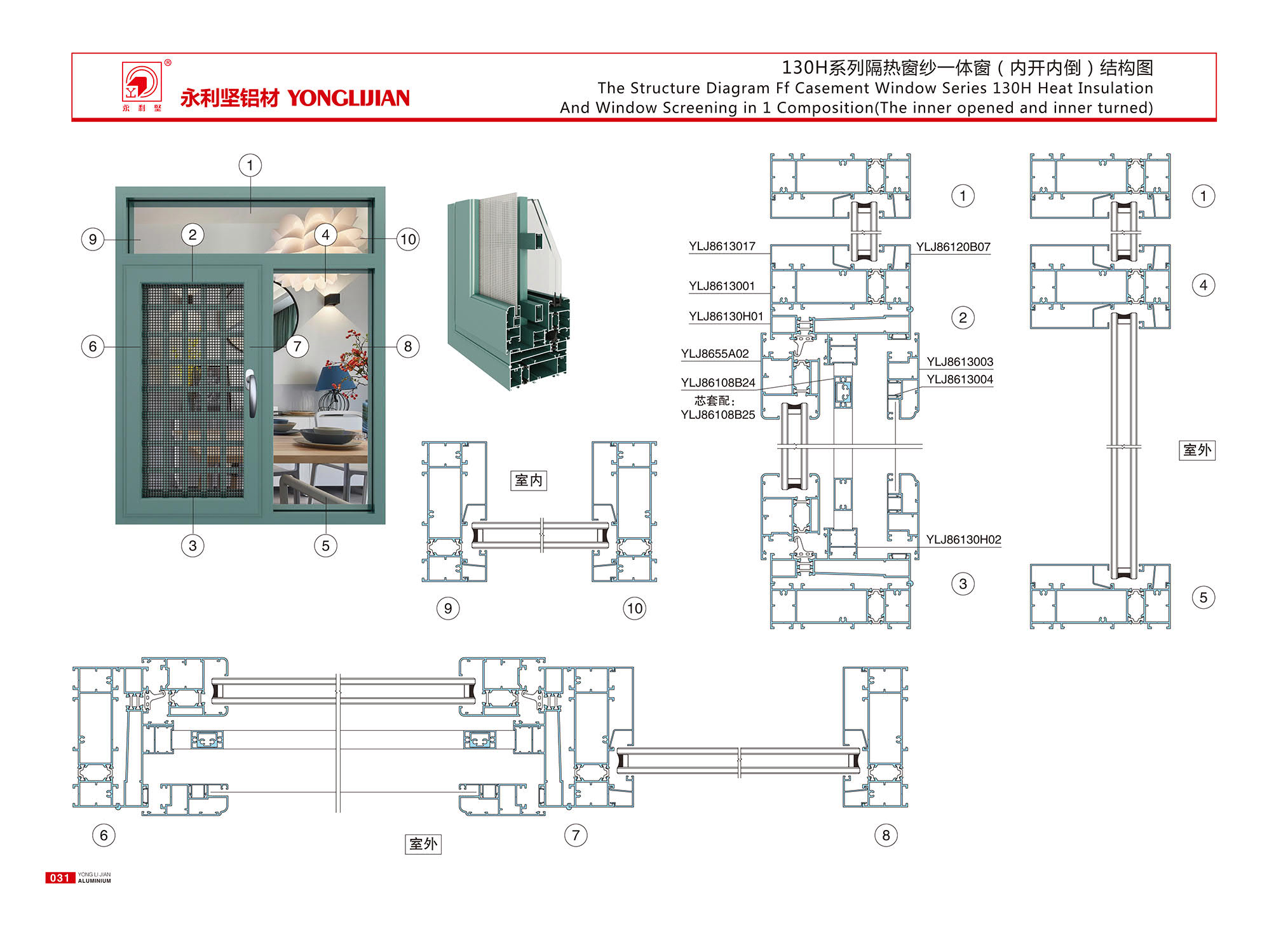 130H series insulated window screen integrated window (inward opening and inward tilting)