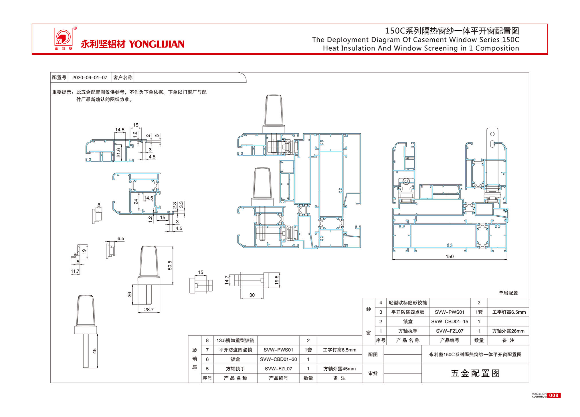 150C series insulated window screen integrated window (inner and outer flat frame, concealed drainage)
