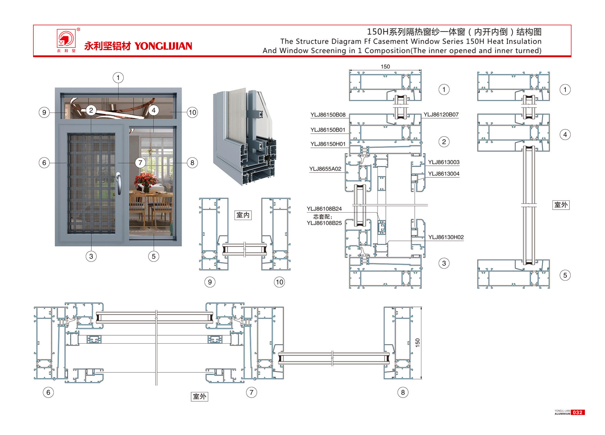150H series insulated window screen integrated window (inward opening and inward tilting)