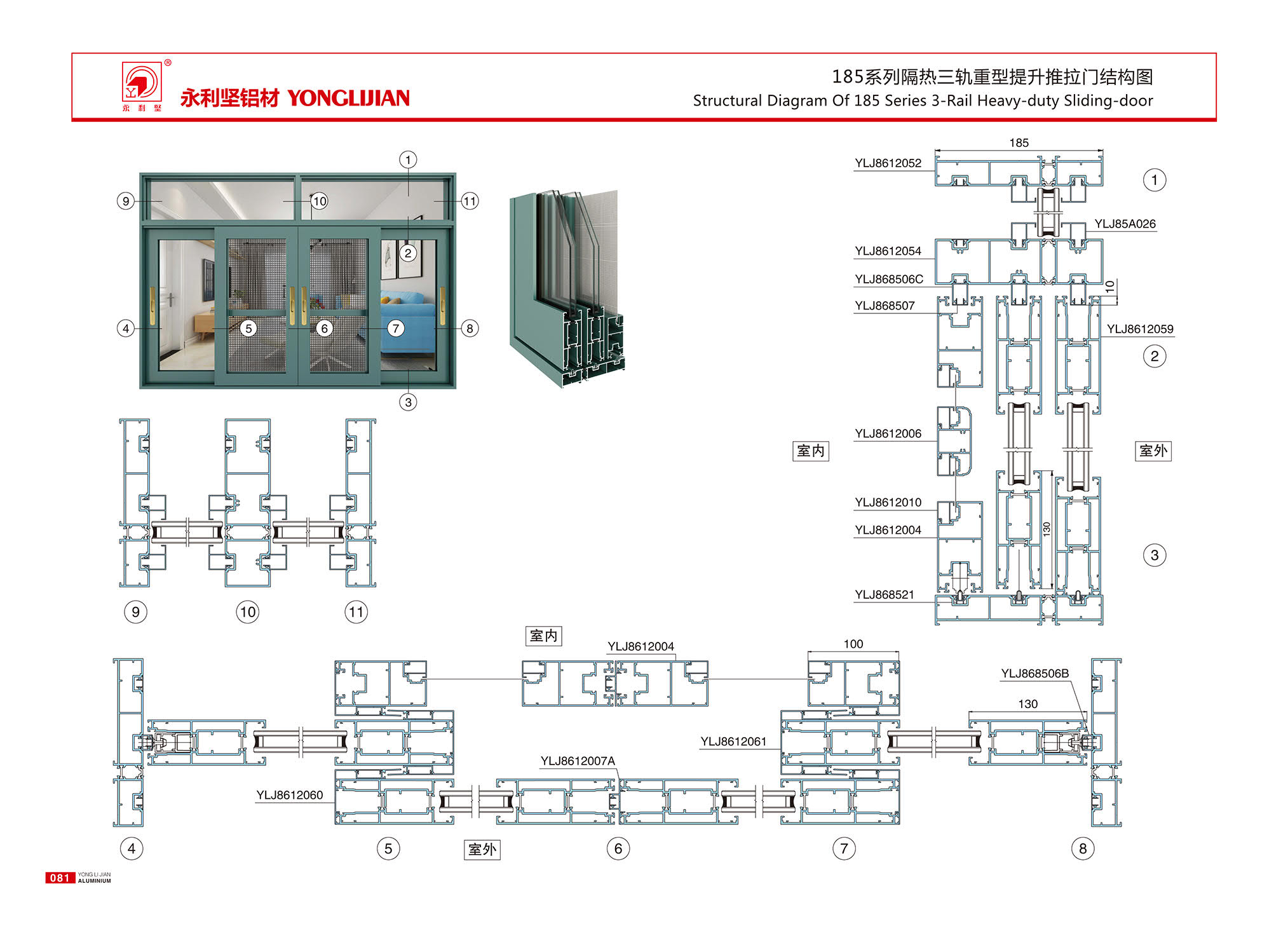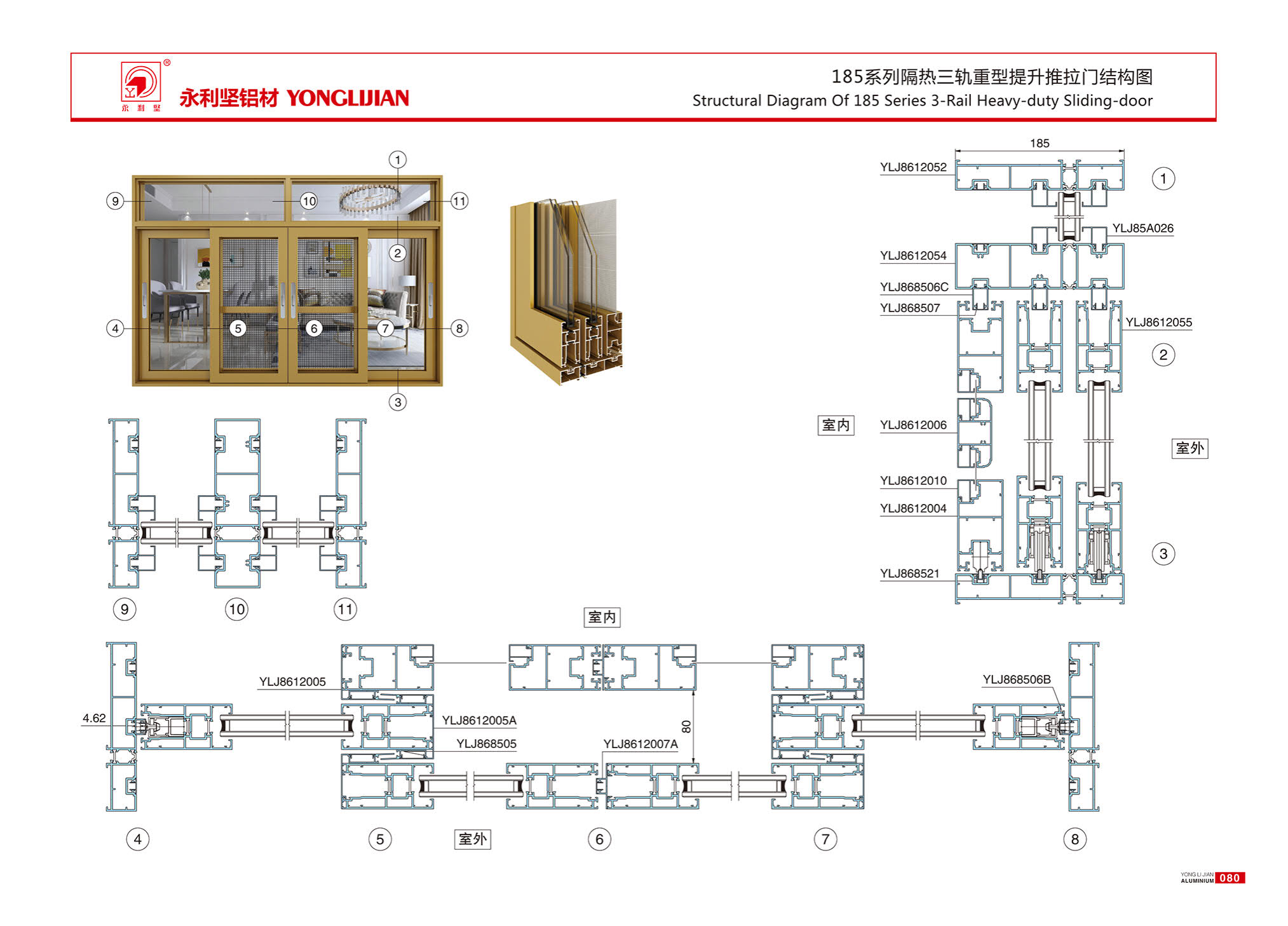 185系列隔热三轨重型提升推拉门