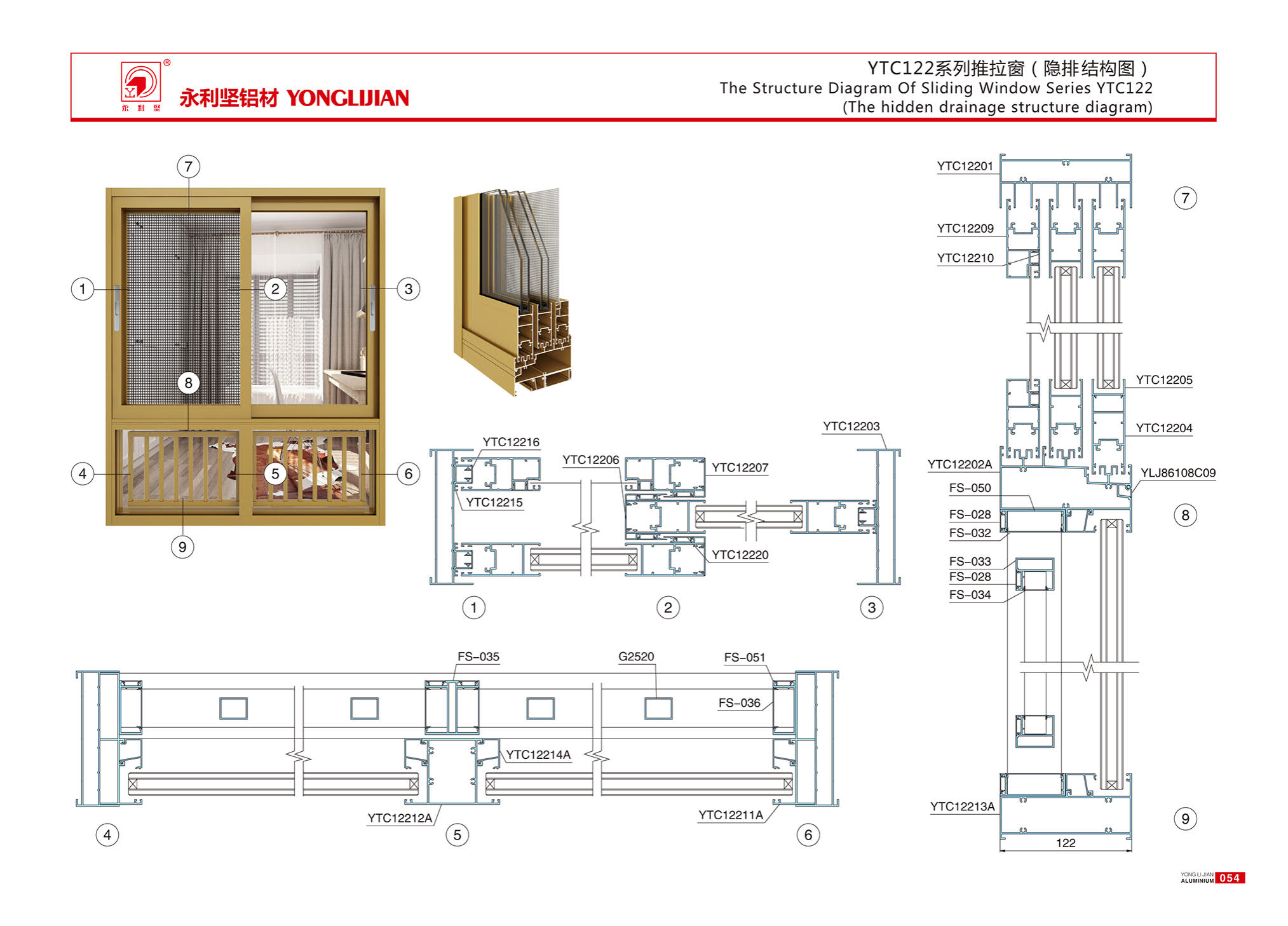 YTC122 series sliding window (hidden)